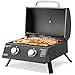 【Solid & Stable Steel Construction】: Heavy-duty steel frame and solid legs of the tabletop propane grill help it to stay stable on any countertop. It also ensures great quality and long-lasting service life. Overall dimension (opened) is 23'' x 18.5'' x 16''(L x W x H).