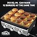 Large cooking area: With a large 355 square inch cooking surface, this propane gas griddle can easily churn out 12+ burgers at a time. Comes with a built-in gas line for a 20-pound tank, which is perfect for large parties.