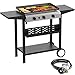 RESTAURANT STYLE COOKING - **replace your grill or BBQ with a Blackstone griddle and never look back** - 28.5" x 16.5" means 470sq inches of flat top grilling. Perfect for breakfast, lunch and dinner - cook everything from eggs and pancakes to quesadillas and grilled cheese to steak and potatoes including Teppanyaki style foods and more. Also enjoy a bottom shelf and two side shelves for food storage and prep.
