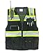 10 MULTI USE POCKETS | BREATHABLE MESH - Premium safety vest construction vest for men/chaleco seguridad that features 10 multi use deluxe pockets: (3) large expandable front pockets w/ strong & durable hook & loop closures, (1) 2-tier front phone/tool pocket, (4) pen/laser/pencil pockets, & (2) big hidden interior pockets. Mens hiviz vest ppe vest with pockets with black trim strips, (2) grommets, (2) mic/radio tabs & heavy duty zipper safety vest (zip up) closure w/ hiviz flourescent pull tab.
