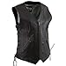 Adjust Easily. The black motorcycle leather vest for men has metal YKK zippers for pocket closure, stainless steel snap on buttons for front closure, and adjustable leather side laces for making quick and secure adjustments on-the-go