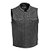 Multifeatured Motorcycle Vest: The mens motorcycle leather vest has two exterior pockets, two interior cell phone pockets, and blacked-out snaps so you don’t have to worry about anything else just enjoying your ride.