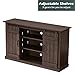 🎄[Large Storage Space] This wood television stand has 5 open compartments to store your PS4 gaming devices, consoles, DVD, speaker, family photos, ect. Middle glass shelves could be adjusted AT DIFFERENT HEIGHT.