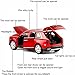 【Door-Open & Sound and Light Effects】Car doors and trunks can open, accompanied with lights and sounds. Press the front wheel to have 3 kinds of realistic sound: engine start, horn & alarm sound and light.