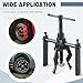 【Special Design】 The puller can be bilateral rotation, enable stretching size and working space.Two jaw with adjustable clamping depth, fit for different size gears and bearings. It can remove gears, pulleys and flywheels off a shaft in hard-to-reach spots without damage your application.