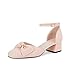 Cute bow knot, closed square toe, chunky low heel, ankle buckle strap, classy D'orsay, all these elements are perfectly combined to form this charming pumps.