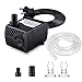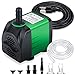 ★【MULTI-OCCASIONS】The fountain pump can make circulation to your tank and give your lovely fish a near-natural environment. This submersible water pump can create water current, ideal for a medium-sized aquarium, water garden, and desktop water fountains. Perfect for backyard fountain/waterfall, aquarium, ponds, fish tank, tabletop fountains, garden statuary, patio drip irrigation system, pet replacement pump and hydroponic systems and more.