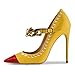SEXY STYLIASH PUMPS: Pointed toe, stiletto high heel, adjustable across body strap with chain, gold rivet studded.