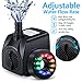 Multiple Application: LED fountain pumps circulate the water and air in your tank, giving your fish a near natural environment; This submersible pump creates a stream of water and is ideal for small aquariums, small ponds, and water gardens; Provide the nice fountain/waterfall for your pond, fish tank, tabletop fountain, garden sculpture, also suitable for yard drip irrigation systems and hydroponic systems