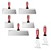 【Multifunctional Scrapers Tool Set】 The 5 pieces drywall taping knives set includes 6'', 8'', 10'', 12'', 14'' different sizes which will make your lives on the drywall job easier, more efficient and more profitable. The 6-piece painter scrapers can be used as scrape putty, clean roller, open cracks and lids, set nails, hammer and screwdriver, one scraper replaces multiple hand tools in your toolbox. Two partner sets complete all drywall construction jobs in high efficiency.