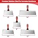 【High Quality Stainless Steel】 For the 6 piece joint knife set, the thick hollow ground blades, made of premium carbon steel with mirror polish finish, hardened for durability and long lifespan. For the 5 piece stainless steel taping knives, blades are made of flex stainless steel, which is better than blue steel in corrision resistance, also has faster application rates for a better finish.