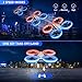 EASY TO USE FOR KIDS: Get started in minutes. Simply press one key takeoff /landing button to start the mini drone. Smart altitude hold allows the kids drone to stay hovering at a certain height to display colored LED lights. Under headless mode, the forward direction will always be the direction you faced when you paired the drone. All these user-friendly features are specially designed for kids, newbies, and beginners.