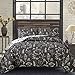 Easy Care: Dark grey white floral plant coverlet bed set king size is machine washable in cold water, with similar color cloth on gentle cycle, Do not bleach, Do not iron.