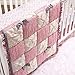 Soft colors and elegant accents highlight this pink, cream, and grey collection of nursery essentials for your baby girl's crib; 3 piece set includes reversible crib quilt, fitted crib sheet, and dust ruffle