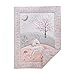UNICORN THEME: You will think that you are in an enchanted forest surrounded by magical creatures. The fitted sheet is tossed unicorns, rainbows and mushrooms, or switch it to the one featuring beautiful flowers in grey and pink. The quilt features an appliqued and embroidered unicorn playing in a field surrounded by trees and mushrooms. The bedskirt has a gauze fabric layered with white and the nursery wall decal featuring a unicorn, trees, a moon and stars, comples your unicorn nursery look.
