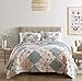 Jolie 3-Piece Garden Floral Diamond Patchwork Vintage Quilt Set Includes: 1 Quilt, 2 Shams