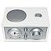 Compact tabletop AM/FM radio with white wooden enclosure and front-firing 3-inch speaker