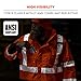 HIGH VISIBILITY - Bright fluorescent with 2” reflective tape for low-light and nighttime visibility