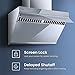 AUTO SHUT-OFF FUNCTION: Wall mount range hood glass has 4 different preset timer functions to meet your requirement, with an interval of 5 minutes between each setting, 20 minutes Max.