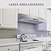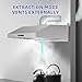 ULTRA QUIET OPERATION: Slim stove vent using a brushless motor has almost no noise at the lowest gear, 300 CFM airflow will quickly ventilate your kitchen and keep the noise level below 45 dB.