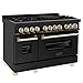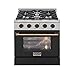MADE IN ITALY - Matte Black , 304 Stainless Steel, Gorgeous, Unique Dual Fuel Range Oven (Gas Burners Electric Oven) - 52,000 BTU Output, Continouus Grates, Electronic ignition,This range is durable and has high corrosion resistance.