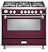 MADE IN ITALY - All Gas - Burgundy, Gorgeous, Unique Range Oven 304 Stainless Steel, 5 Sealed Brass Burner 52,000 BTU Output, Continouus Grates, Electronic ignition, Flame failure safety device