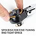 PRECISION CRAFTED: Stubby size for easier reach into tight spaces, spin disc on ratchet head for one finger spin down/off, and 36 tooth gear mechanism