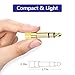 1/4 inch to 1/8 inch Adapter: allow a 6.35mm (1/4 inch) stereo port to accept a stereo cable with a standard 3.5mm (1/8 inch) plug, Gold-plating resists corrosion and ensures minimal signal loss
