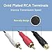 Golden plated connectors and oxygen free copper conductors ensure less loss of signal transmission, convert 3.5 mm port audio devices to 2 RCA plugs equipment