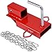 High Quality Material: The forklift tow hitch is made of heavy duty steel construction. Red powder coated finish. Anti-rust and anti-corrosion. With a durable safety chain and 2 handles for fixing the forks, adding stability and safety.