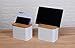 Dimensions - Vintage Recipe Box: 6.5" x 4.25" x 4.5". Farmhouse Recipe Box Height with handle 5.25". Material: Galvanized Steel. Color: Body is Matte White/Logo Pantone Cool Gray 7C. Hand wash only. Not suitable for a dishwasher.