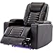 MODERN RECLINER: Put yourself in the driver’s seat with this power reclining chair with leather seating inspired by sports car interiors and a fully loaded set of tech features