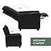 ALWAYS COMFORTABLE: Sit back and relax with a max tilt angle of 135 degrees. The faux leather surface, all over thick padding, and an extra ottoman make this small recliner the most comfortable seat after a long day.