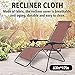 【Durable Frame】Constructed from sturdy aluminum seat posts and steel leg posts, this recliner is sturdy enough to hold people up to 300Lbs. In addition, its material fabric is durable enough to ventilate in the summer and you can put cushions on it in the winter.