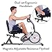 【FOLDABLE & ADJUSTABLE & EASY TO MOVE】The folding exercise bike can be easily folded fully (18.5*9.8*52.7 inches) to occupy minimal space for storage.The backrest is also folding design.And the height of seat can be adjusted with 7 levels which can fit for different users.The stationary bike equips with portable wheels,which allow you move the exercise bike easily at your home gym.