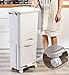 【HIGH QUALITY & LARGE CAPACITY】The trash can made of high quality PP material with excellent flexibility, which is environmentally friendly, wear resistant and damage resistant, durable for use. With capacity of 11 Gallon(42L), this 3 section recycle bin does not occupy space with an elongated body, and the design of the triple storage buckets improves the separation of garbage, and it looks clean and practical in elegant white.