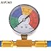 R134a Fridge Recharge Hose : One side of the refrigerator recharge hose is puncture style r134a can tap, the other side is 1/4 SAE female prot to connect refrigerator male port. The middle multicolour gauge can read for r134a refrigerant, Extra large and Colorful dials design is easy to read.