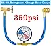 【R134a Refrigerant Recharge】AC freon recharge hose with gauge for R134A R12 R22 or R502 refrigerant to vehicle or home air-conditioning, extra large and colored dials with fahrenheit scale is easy to read, gauge rated 350psi max pressure, hose rated 3000 psi burst pressure and 600 psi max working pressure.