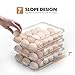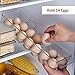 ELEVATED DESIGN - The egg dispenser for refrigerator has a slope design with heightened edges and rounded corners allowing each egg to automatically roll forward harmlessly for an easy pick without removing the lid.