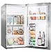 【Multi-Function Storage】 With a small freezer area inside, which can fill the needs for storing frozen foods or making Ice cubes. The freezer baffle can easily keep the frozen food (such as sweet ice cream) always in cold mood. With a drawer, you can store fresh fruits as your wish, even a big watermelon can be easily placed into this drawer.