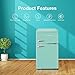 Product 1: Retro Compact Refrigerator uses R600a high-efficiency and low-energy consumption compressor, it can cool food quickly with lower energy. Leveling legs can adjust feet and keep level placement anywhere