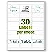 【Label Size】Label size: 1"x2-5/8",Sheet size: 8.5" X 11". 30 Labels per Sheet, Totally 150 Sheets , 4500 Labels.