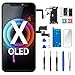 🎁【Package & Tips】: It includes 1*compatible with iPhone X OLED screen+1*magnetic screw mat+1*installation manual+1*tempered glass protective film+1*waterproof frame adhesive sticker+1*repair tools set. No more loss of removal parts, the magnetic pad shows where you should place back removal parts and you can put all the screws and flex cable firmly on it. The tempered glass protector makes you no longer need to worry about scratches or hammers. The waterproof seal maintains waterproof ability.