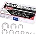 ✅SHOP HANDY SET: Sometimes known as C-clip or rotor clip, these snap rings are fasteners or retaining rings that are the semi-flexible metal material, and open-ended to be snapped into place in a machined groove on a dowel pin, as found in automotive axles and shafts to stop lateral movement and allow rotation.
