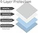 4 layers of Ultra protection: Deluxe blended fabric and premium brushed polyester quilted top, soft polyester fiberfill layer, Absorbent inner layer, and Non-slip latex-free waterproof barrier