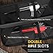 【LARGER STORAGE SPACE】 This dual rifle case has multiple storage compartments which can hold carbines/shotguns, two pistols, magazines and ammo, earmuffs, goggle, and other gear you need in the shooting range.