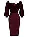 ❤❤ 【 Retro 50s Look 】pinup dresses for womens 50 retro vintage square neck dress, features 3/4 sleeve, square neck with sweetheart neckline at bottom, add more elegance. Knee length A-line dress style with high waistline and big flowy swing, perfectly show your body curve while hiding your tummy. Concealed side zipper, easy for wearing. Slim fit flared dress adds more vintage feeling.