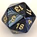 These are amazing tiny gemini polyhedral dice set. With half size of normal RPG dice, this set is so small to hold in hand. They are beautiful swirled two-tone effect, contains one d4, one d6, one d8, one d10, one d%, one d12, and one d20. You will fall in love playing with them!