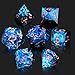 ♦Mirror Look and Beautiful Coloration♦ Crafted from hand-poured duo-tone, purple and cyan-blue, each die is lovingly hand sanded and mirror-like polished to wonderfully sharp angles and lines, fine edges. Contains holographic foil inclusions with electric blues, greens and golds, the colors are bright and vibrant. And the dice shimmer in hand as gently turn them in light, looks luxurious and eye-catching.