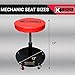 STURDY CONSTRUCTION - Stamped steel construction frame with red painted finish for added durability and great looks. This mechanic stool can bearing 350 pounds, almost anyone can take a seat. Overall Dimensions : 17.5" H X 23.6" W X 15.8" D